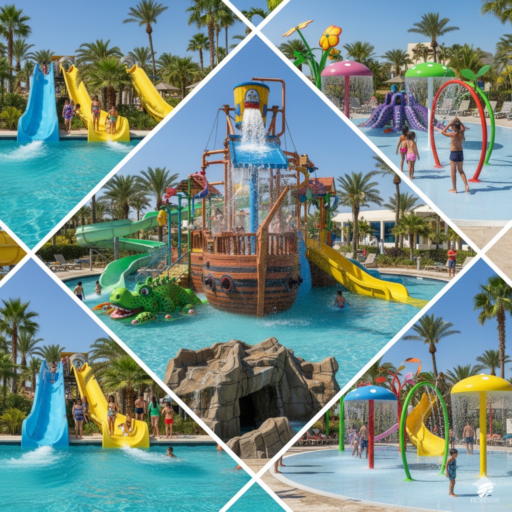 - Çocuk Su Oyun Alanları (Aqua Play): Düşük eğimli, sığ havuzlara iniş yapan minyatür fiberglass su kaydırakları ve fıskiye sistemleri. Çocukların güvenli ve renkli bir ortamda oynaması için tasarlanmıştır.